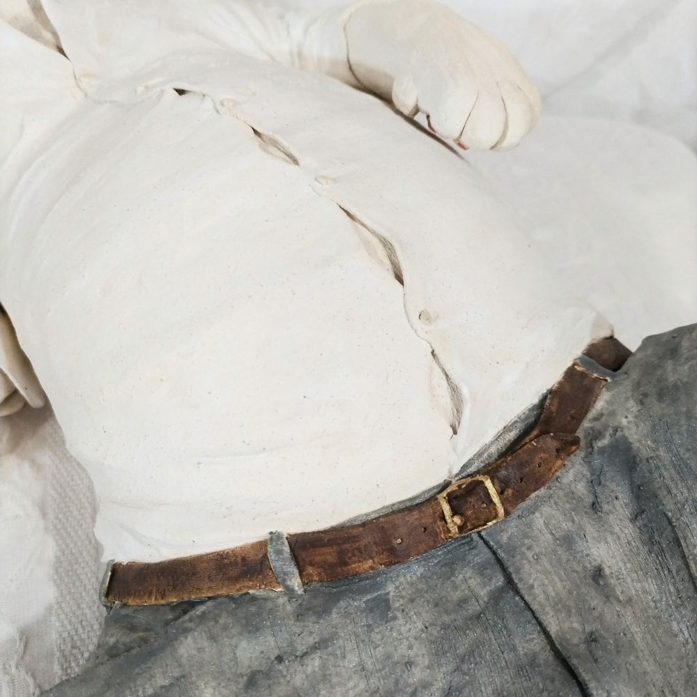 輸送中の事故により足が折れてしまいました。単純骨折なので接着剤と塗り直しで目立たない程度には仕上がっています。